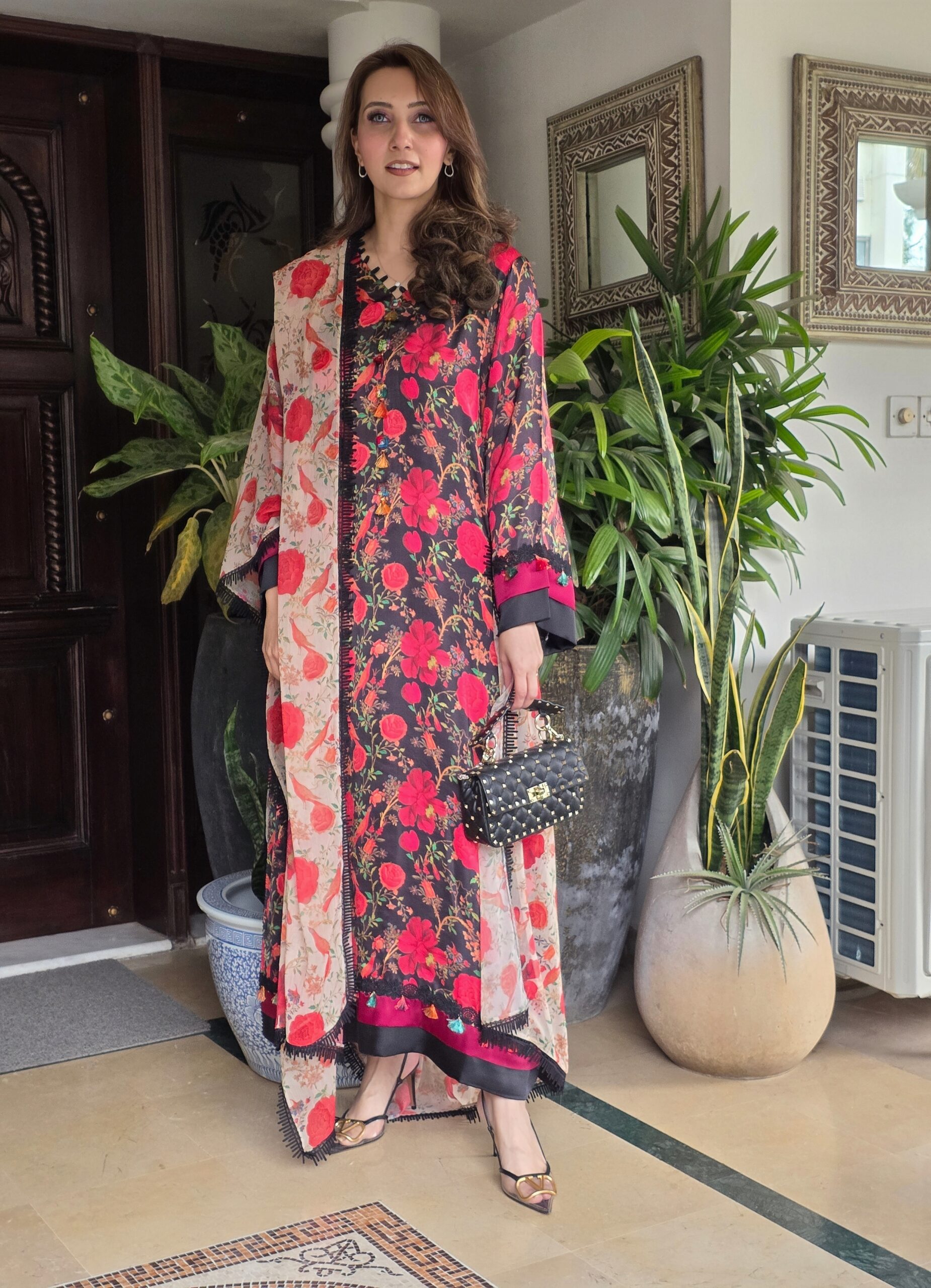 Silk printed shirt beautifully stitched comes with printed chiffon dupatta.