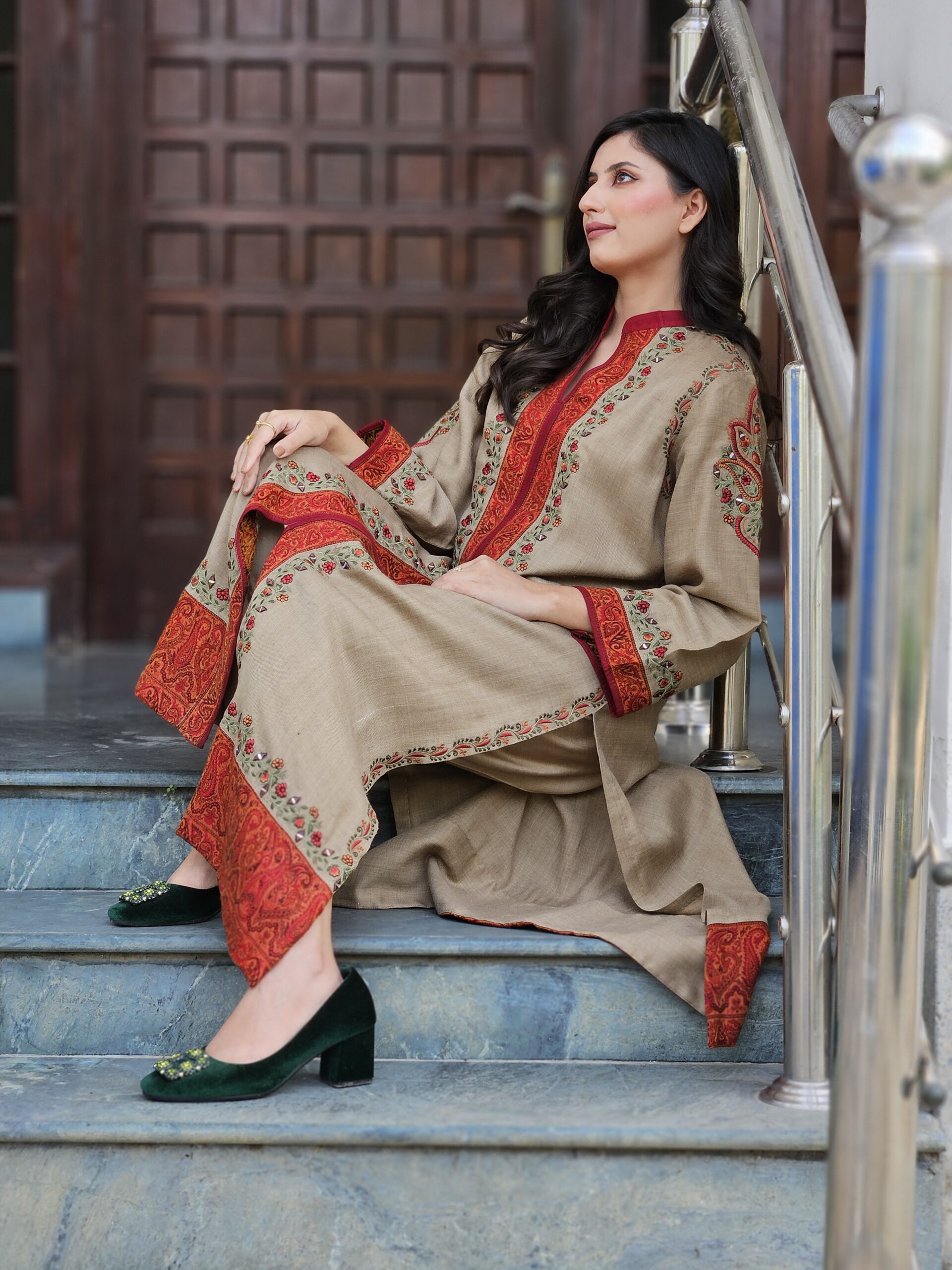 Our signature pashmina kurta is worth having this season . It comes with pants.